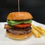 近江牛100%パティ、無添加ベーコン、レタス、トマト